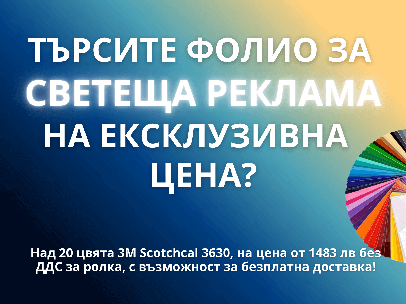 За всички професионалисти в изработката на светещи реклами имаме отлична новина – избрани цветове от серията 3M Scotchcal Translucent Graphic Film 3630 са вече с промоционална цена от 1483 лв без ДДС за ролка! 3M Scotchcal Translucent Graphic Film Series 3630 е висококачествено каландрирано фолио, проектирано специално за светещи рекламни приложения. Отличава се с равномерна…