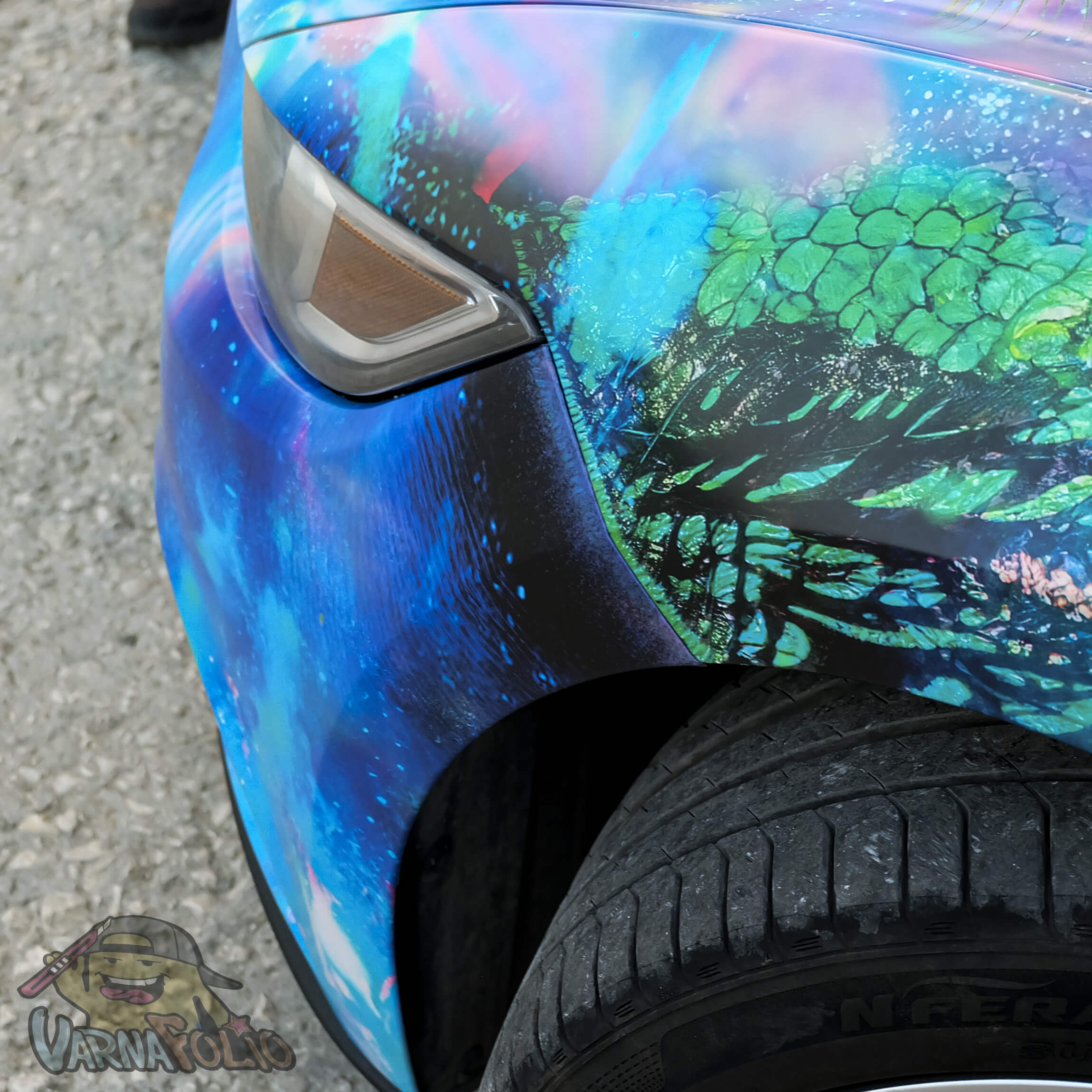 Наскоро професионалистите от Варна фолио създадоха и изпълниха ефектен дизайн върху автомобил на свой клиент. Майсторски свършената работа събира погледите, тъй като съчетава ярка художествена концепция със внимателно балансирани детайли и прецизно изпълнение при облепването с автомобилно фолио.