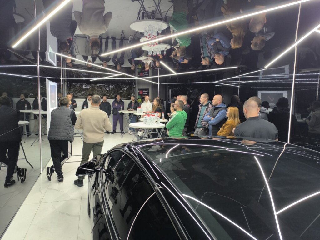 Иван Тенчев демонстрира техники за апликация, използването на 3M Design Line и 3M Finish Line ленти за безножово рязане, както и подходящите инструменти и апликатори за различните типове фолио от PA Gold и Cleaner Clay до Microfibre Cloth и PPF Installation Gel.